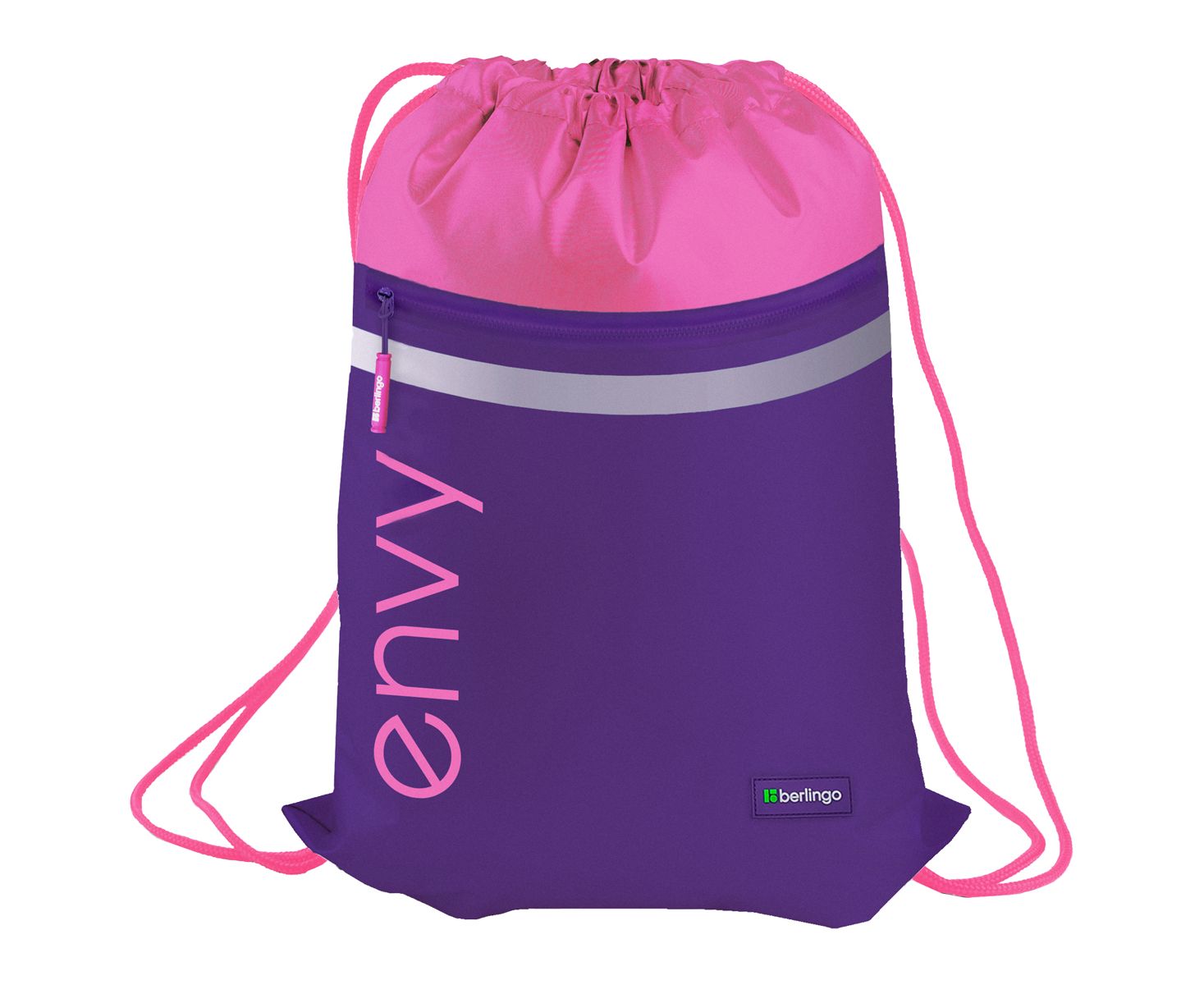 Удобный мешок для обуви Berlingo Envy оснащён широкими шнурками и вместительным передним карманом на молнии. Яркое оформление непременно понравится девочкам. Размер изделия 360*470 мм. Модель изготовлена из плотного высококачественного полиэстера. Световозвращающие элементы обезопасят в тёмное время суток. Мешок идеален как для зимней обуви, так и для спортивной экипировки. Индивидуальная упаковка в пакет.