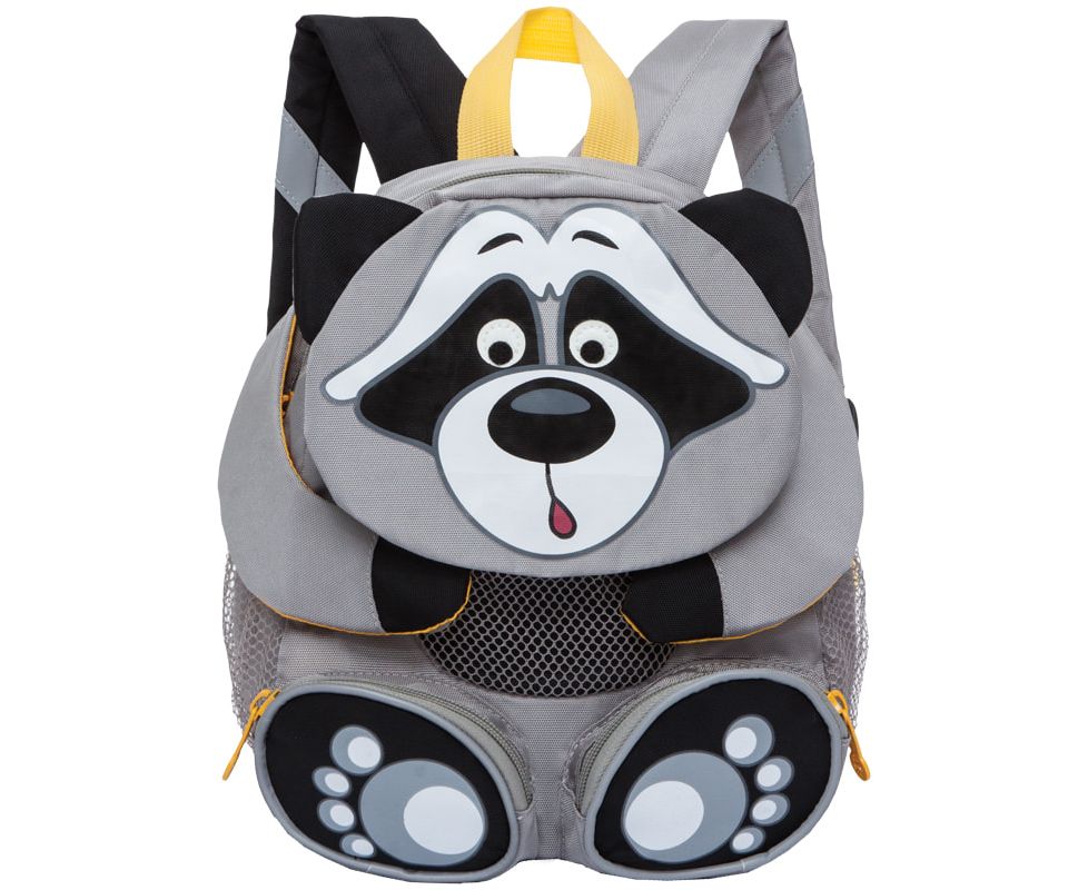 Рюкзак детский Grizzly "Енот", 24*29*14см, 1 отделение, 5 карманов, уплотненная спинка, серый/черный