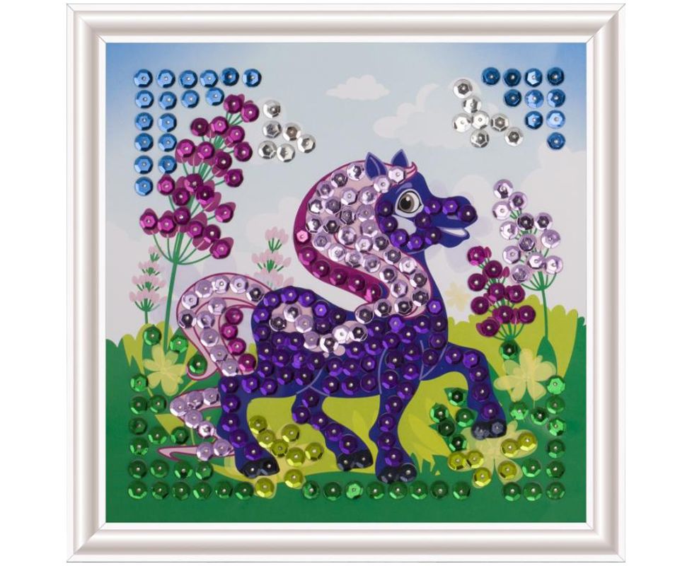В наборе: пайетки круглые 6мм,пенопласт 20*20,плинтус, печатная основа, пин-гвоздики 12мм. С помощью наборов этой серии Ваш ребенок сможет создать великолепную картинку из пайеток на цветной основе, которая станет не только отличным украшением дома , но и запоминающимся подарком для друзей и родственников.