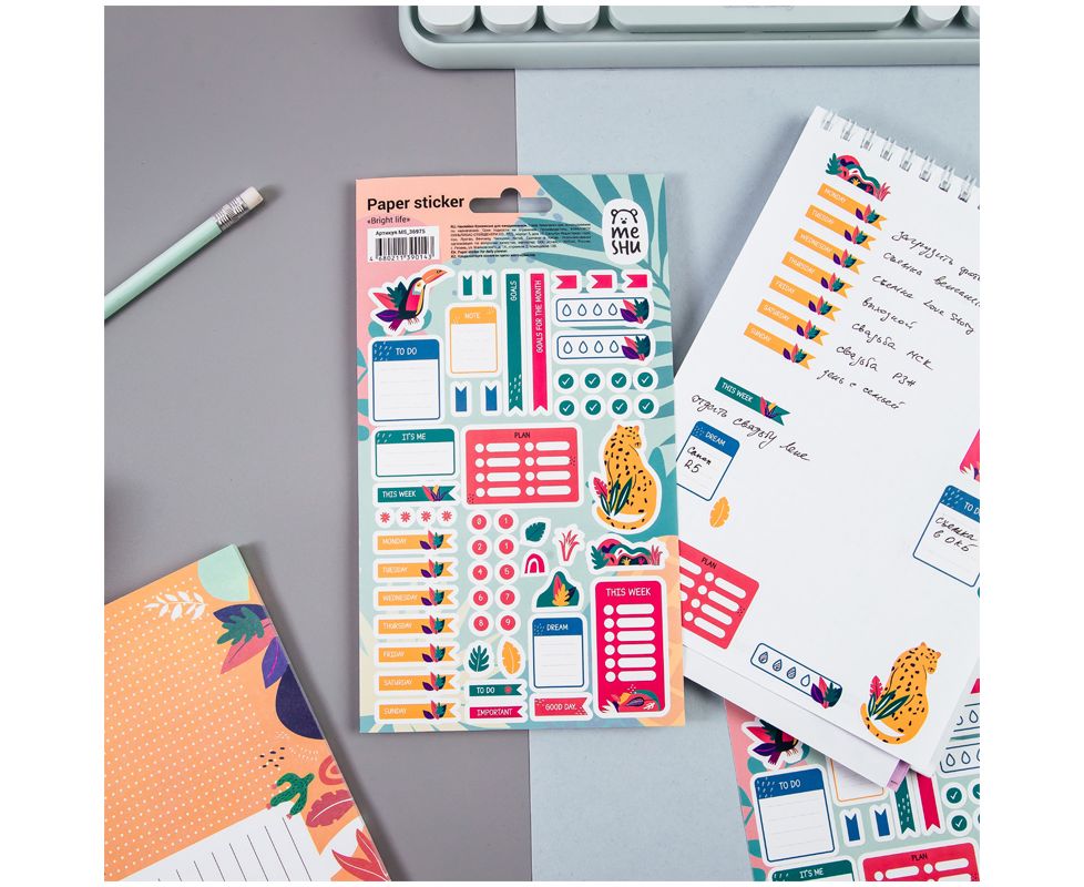 Наклейки бумажные для ежедневников MESHU "Bright life", 12*21см, 55 наклеек, европодвес MS_36975