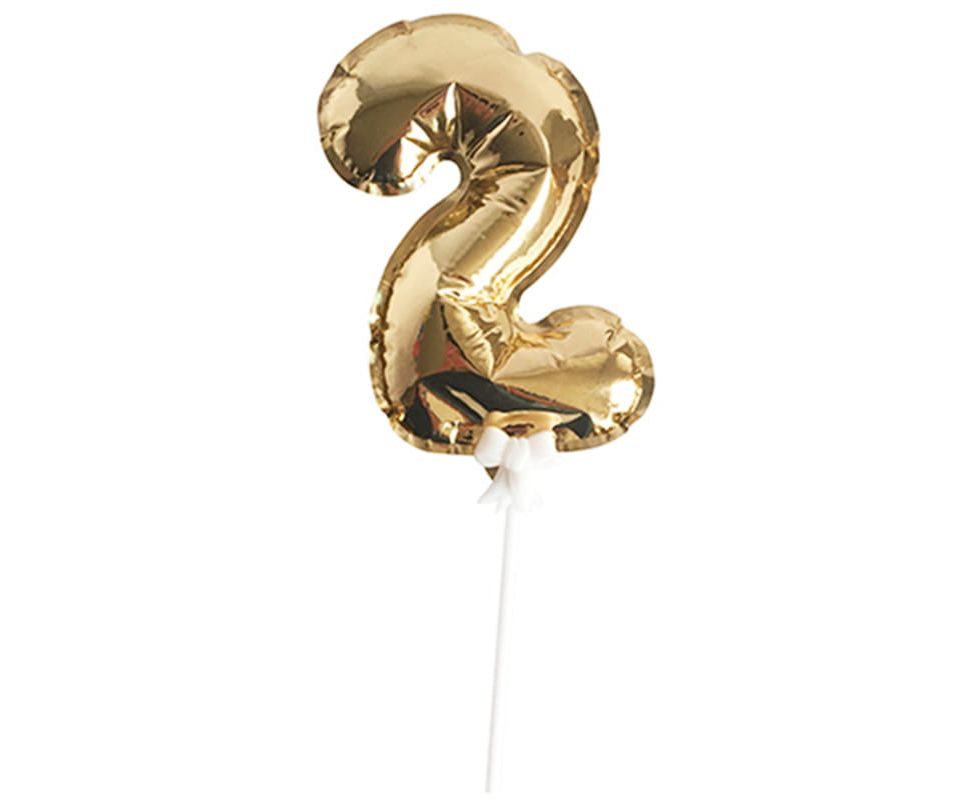 Воздушный шар, самодув, 18см Поиск "Цифра 2", фольгированный, золотой