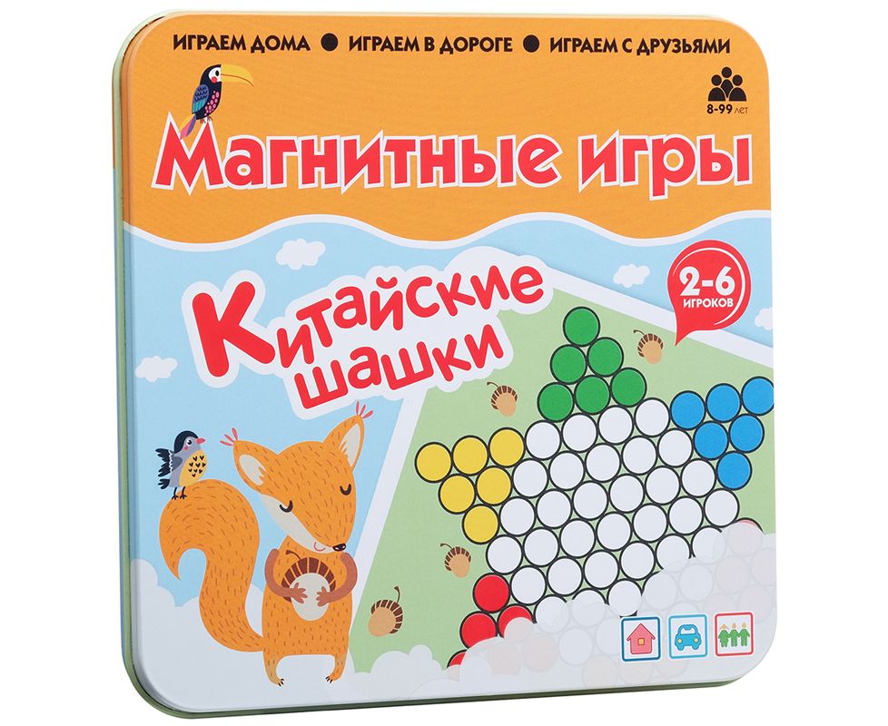 В комплекте: металлическая коробка с магнитным полем, магнитные фишки