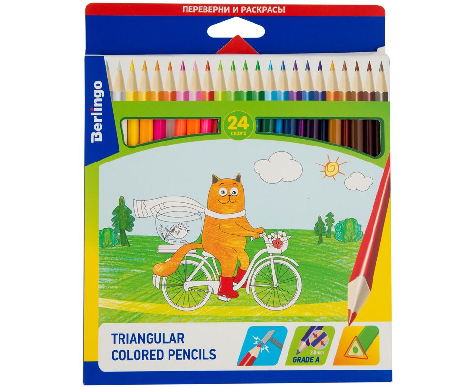 Карандаши 24 цв BERLINGO"Жил-был кот",трехгранные,заточенные