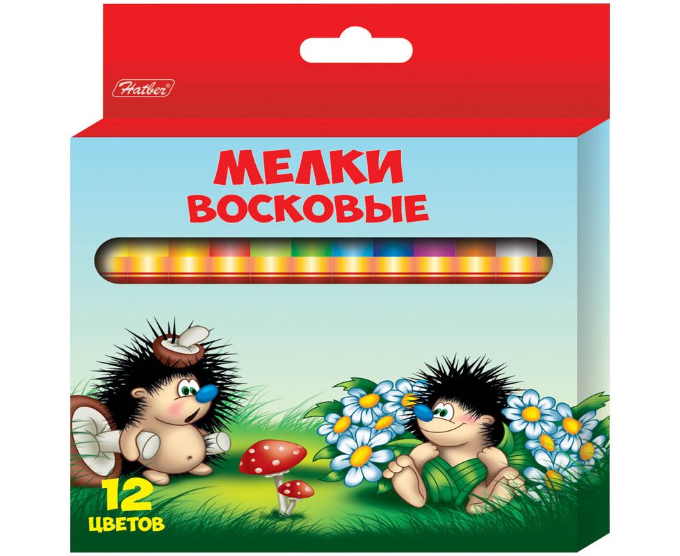 Круглые восковые мелки. В наборе 12 цветов. Размеры мелка 11х100мм. Упаковка - картонная коробка.