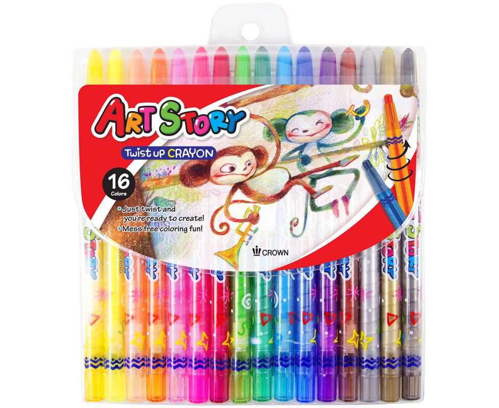 Восковые карандаши отличаются необыкновенной яркостью и стойкостью цвета, легко смешиваются, создавая огромное количество оттенков. Очень прочные, не крошатся, не ломаются, не образуют пыли, не нуждаются в затачивании. Цвета: флюоресцентный желтый, желтый, пастельный оранжевый, оранжевый, розовый, флюоресцентный розовый, красный, желто-зеленый, зеленый, голубой, синий, пурпурный, коричневый, серебро, золото, черный.