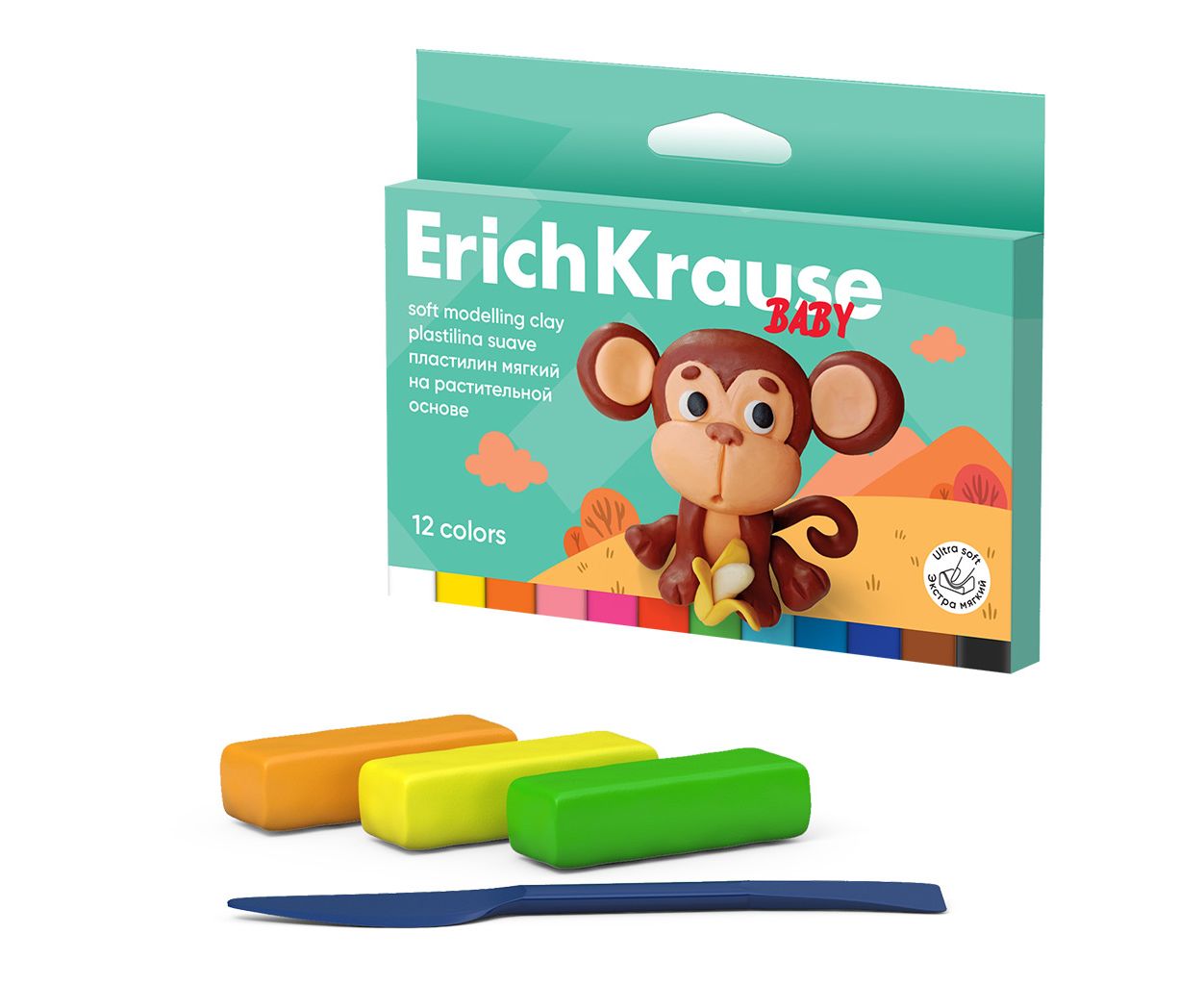 Пластилин 12 цветов 180 г. ErichKrause Baby с Алоэ Вера со стеком